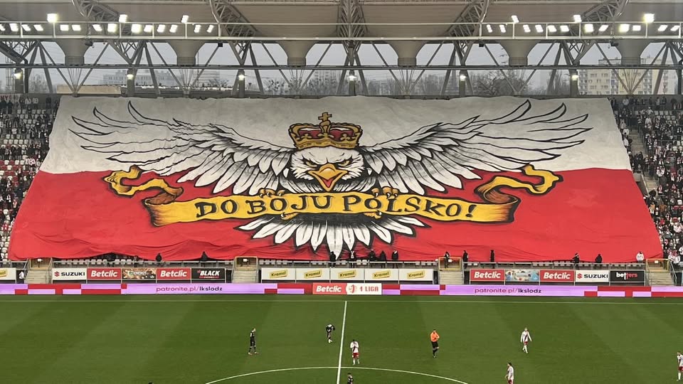 Już 7 grudnia 2025 roku, podczas meczu 1. ligi ŁKS Łódź – Wisła Kraków, kibice gospodarzy (w tym Ultras ŁKS) zaprezentowali dokładnie tę samą oprawę na trybunach stadionu przy al. Unii. Orzeł na biało-czerwonym tle, napis „Do boju Polsko!” – wszystko jak w oryginale.
